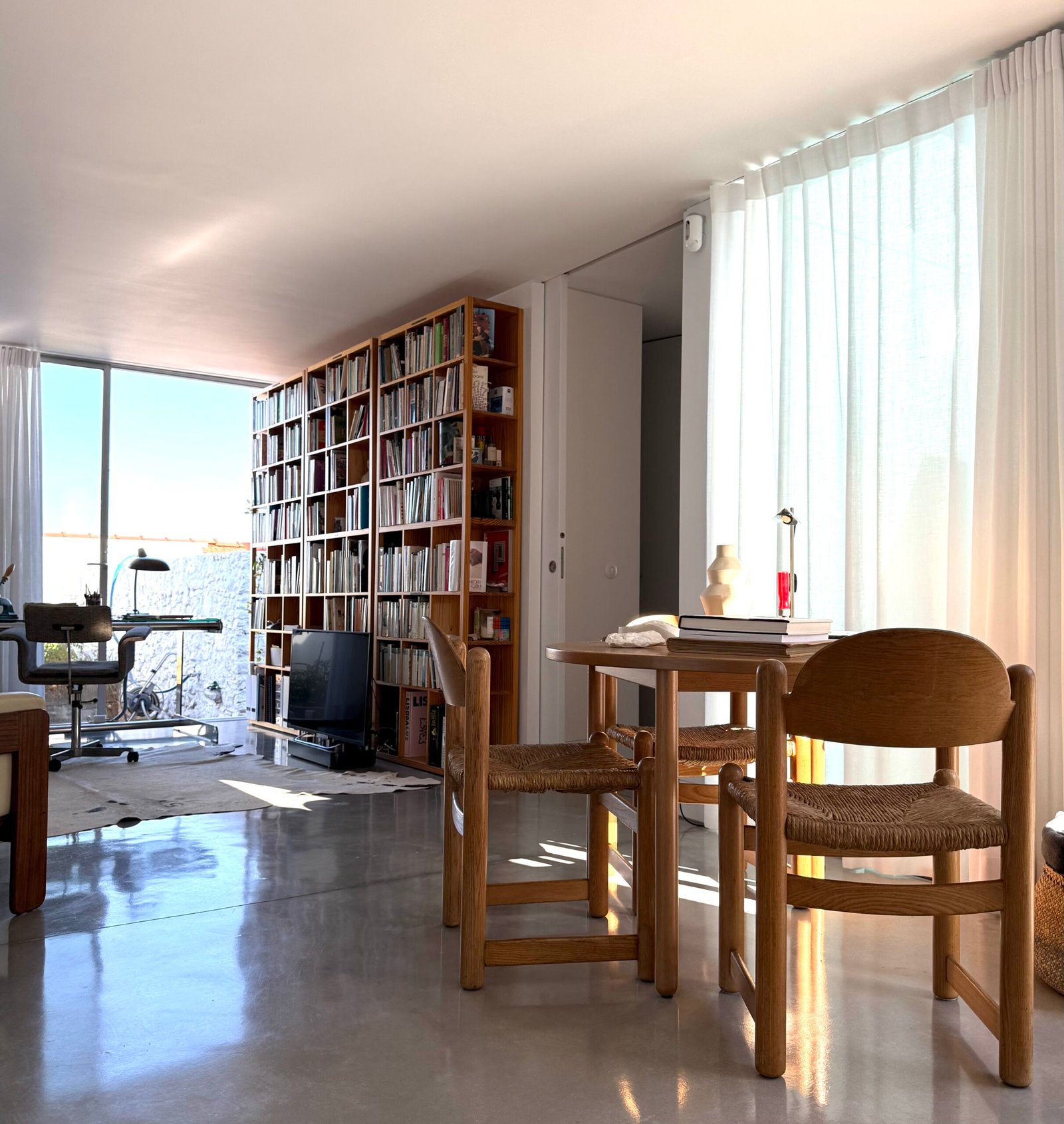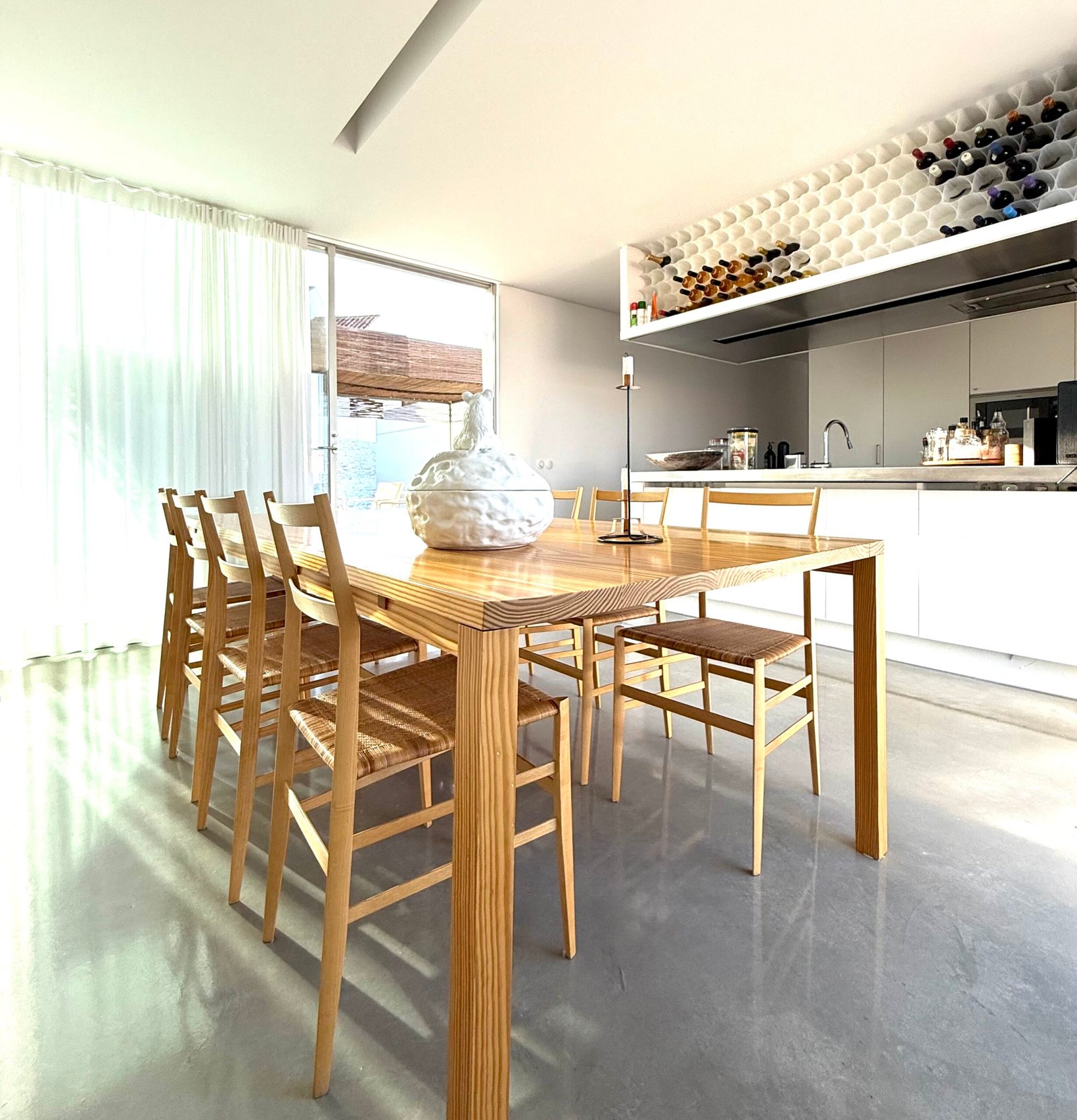 Wonderfully fluid and functional, where everything is instinctively at hand, it nonetheless remains magically romantic, with the light pouring through from reflections of the white calk of the outer walls and with the morning sun hitting on the vegetable garden, watered everyday by 73-year-old gardener Ezequiel with a precision that rivals Immanuel Kant’s famous Königsberg walk.