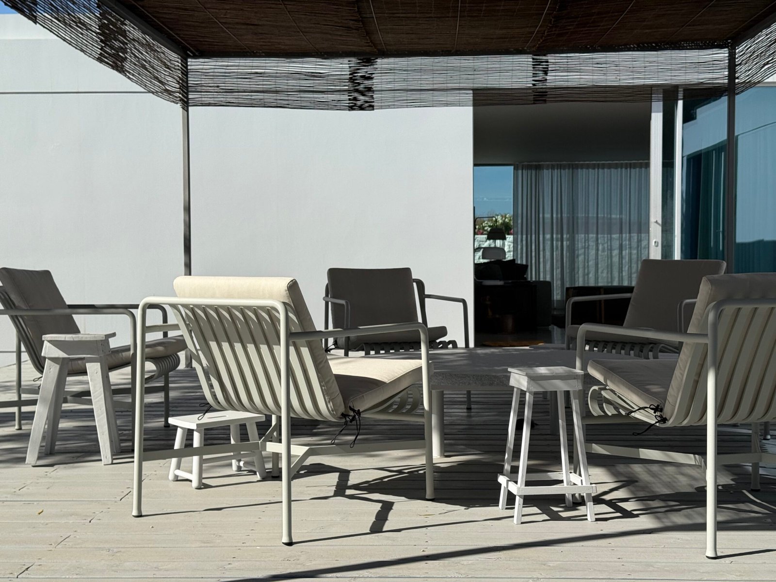 Designed in a T-shape, this CASA DA MATRIZ elegantly balances social connectivity with secluded privacy. The south wing functions as the home’s culinary heart, housing the kitchen and dining area which opens directly onto a garden pergola and outdoor dining terrace. At the central intersection, the living room and study are defined by fully glazed sliding windows that foster an informal, fluid atmosphere while providing natural passive cooling through cross-ventilation. This central hub serves as the gateway to the private quarters, where an expansive master suite extends to the east and two additional guest suites branch to the west, ensuring total seclusion for all residents.